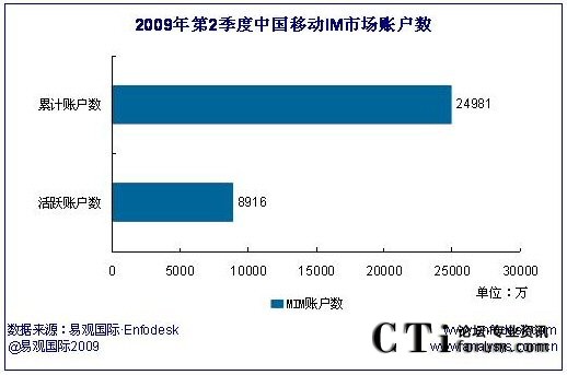 2009年第2季度中國(guó)移動(dòng)IM市場(chǎng)活躍賬戶(hù)數(shù)達(dá)8916萬(wàn)