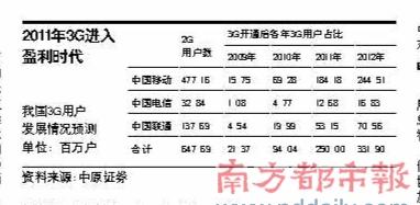 圖:我國3G用戶發(fā)展情況預(yù)測
