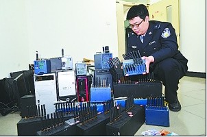 昨天,西城公安分局通報(bào),警方一舉搗毀5個(gè)特大手機(jī)短信群發(fā)窩點(diǎn),抓獲8名嫌疑人,并以涉嫌非法經(jīng)營(yíng)罪予以刑事拘留。這是本市警方首拘短信群發(fā)人,今后一旦發(fā)現(xiàn)類似情況都以相同手段處理。