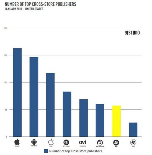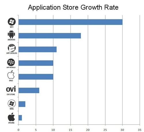 專注于App Store發(fā)展得研究者Distimo昨天公布了一份有關(guān)手機(jī)應(yīng)用程序商店的市場報告,報告顯示W(wǎng)indows Phone 7的增長速度高達(dá)30%。