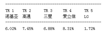 第一階段;湯森路透將每一項(xiàng)專利同歐洲電信標(biāo)準(zhǔn)協(xié)會(huì)截至2011年11月18日的LTE規(guī)范進(jìn)行比較,確定專利的重要性。第二階段涉及先有技術(shù)檢查,即審查在美國和歐洲申請(qǐng)專利過程中的先有技術(shù)參考文獻(xiàn)。湯森路透利用先有技術(shù)參考文獻(xiàn)評(píng)估每項(xiàng)專利的新穎性并給出新穎性評(píng)級(jí)。湯森路透發(fā)現(xiàn),擁有屬于LTE標(biāo)準(zhǔn)范疇的基本與新穎專利的領(lǐng)先廠商有諾基亞、高通、三星、愛立信和LG。結(jié)果如下: