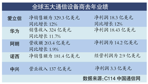 至此,全球五大通信廠商都發(fā)布了去年業(yè)績,全球通信前5強(qiáng)中,中國已占2席。不久前,中興通訊(微博)總裁史立榮在IT領(lǐng)袖峰會上表示,全球電信設(shè)備領(lǐng)域基本上已經(jīng)進(jìn)入了一個寡頭時代,這是技術(shù)投入加大形成高門檻的結(jié)果。