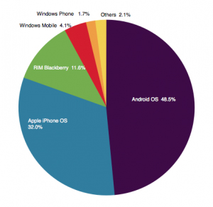北京時間5月8日早間消息,市場調(diào)研公司尼爾森周一發(fā)布調(diào)查報告稱,美國市場智能機(jī)用戶量已經(jīng)超越基本功能手機(jī)用戶量。今年3月,智能機(jī)在美國手機(jī)市場的份額為50.4%,Android繼續(xù)占據(jù)統(tǒng)治地位,在智能機(jī)中的份額為48.5%。