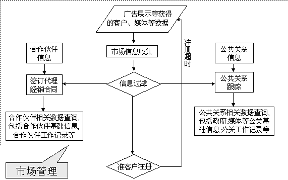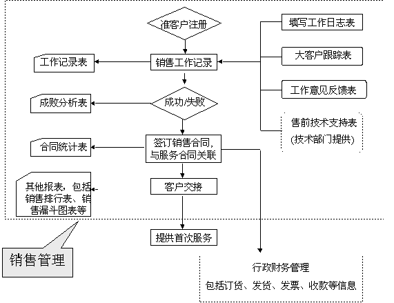 選定適合中小企業(yè)應(yīng)用的CRM軟件 ----啟利CRM ( ChineseCRM.Net ),并由啟利公司負責提供實施服務(wù)。CRM系統(tǒng)的主要模塊包括:市場管理、銷售管理、服務(wù)管理、行政管理,各模塊主要業(yè)務(wù)流程圖如下: