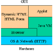 Dynamic HTML可以很好地進(jìn)行公開信息的發(fā)布,通過(guò)HTML Form機(jī)制可以從瀏覽器中得到用戶檢索等簡(jiǎn)單操作的輸入信息。對(duì)于無(wú)須身份認(rèn)證、訪問(wèn)控制的內(nèi)容,在Web Server上可以使用通常的CGI技術(shù)獲取用戶的請(qǐng)求、查詢條件,通過(guò)Web Connector還可以使用應(yīng)用服務(wù)其提供的后臺(tái)服務(wù),結(jié)果使用HTML方式描述,并可直接回送到客戶端的瀏覽器。如果進(jìn)一步使用Applet技術(shù),還可以在客戶端實(shí)現(xiàn)更為友好的交互式顯示模式。無(wú)論是使用DHTML技術(shù)還是HTML Form加上Server方擴(kuò)展(如CGI, ISAPI, NSAPI, fastCGI和servlet等)。它們適合處理的業(yè)務(wù)都是每次請(qǐng)求/應(yīng)答基本獨(dú)立,相互無(wú)關(guān)聯(lián)的情況。對(duì)于一些更為復(fù)雜的應(yīng)用,要求前后操作具有相關(guān)性,客戶與服務(wù)器端各自保持狀態(tài)的變化且狀態(tài)是相關(guān)的。在這種情形之下,更好的解決方案是將客戶端的所有操作保持在一個(gè)Applet中完成,由Applet直接與Web Server交互數(shù)據(jù)來(lái)完成請(qǐng)求/應(yīng)答數(shù)據(jù)的交互。