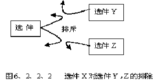 選件的排除關(guān)系是指在產(chǎn)品配置時,選擇了一件就不能選擇另外一件或多件。比如在旅行社在組團(tuán)時規(guī)定,如選擇了酒店A,就無法選擇組件交通工具中的選件火車,因為酒店A離火車站太遠(yuǎn)。圖6、2、2、2說明了這種關(guān)系。