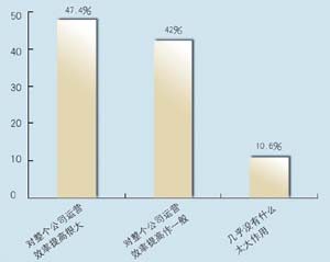 在問到實施周期上,有9家表示希望在3個月內(nèi)完成,占到47.4%,有6家接受3~6個月的周期,超過6個月的周期已經(jīng)顯得太長。在問到CRM的實施效果上,有9家認(rèn)為對公司運營效率有很大提高,8家認(rèn)為作用一般,只有2家認(rèn)為沒有作用。表明基本上企業(yè)認(rèn)可CRM的作用。在問到是否有專門人員負(fù)責(zé)CRM時,有6家表示有專門部門,有6家有專門人員,合計占62%,說明企業(yè)非常重視CRM的應(yīng)用。