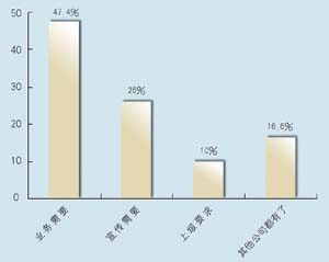 在問到對CRM的熟悉程度方面,有12家表示熟悉,占到63.2%,另有7家表示不熟悉,說明許多企業(yè)已經(jīng)對CRM有一定了解,不過也仍有相當(dāng)大的市場空間。其中有8家建立了CRM系統(tǒng),占到42%,計劃建立的有9家,占到47.4%,而有2家表示短期不會建立。從調(diào)查發(fā)現(xiàn),幾乎所有受訪者都接受和認(rèn)同CRM,盡管有一些企業(yè)還不熟悉,但在調(diào)查問卷中對此表現(xiàn)出極大的興趣。在CRM的采購動機(jī)上,有9家表示是為了提高業(yè)務(wù),占到將近一半的比例(47.4%),而有5家表示出于企業(yè)宣傳,2家屬于上級主管部門要求,有3家表示是出于同行的示范。調(diào)查顯示,企業(yè)獲得CRM的信息來源很廣,最多的是通過報刊雜志的廣告,有6家,占31.6%,而上級推薦和供應(yīng)商推薦各有4家,各占21%,有兩家是集成商推薦,此外還有3家通過展會獲得相關(guān)信息。