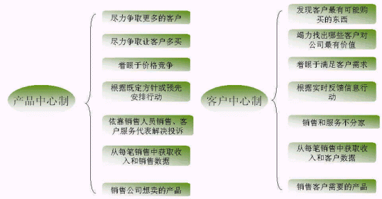 蓋洛普認(rèn)為新型的企業(yè)與客戶的關(guān)系應(yīng)當(dāng)是以"客戶為中心"與客戶的互動(dòng)關(guān)系,通過(guò)滿足客戶需求提高客戶滿意度來(lái)吸引和留住客戶,從而建立和保持企業(yè)的競(jìng)爭(zhēng)優(yōu)勢(shì)。這其實(shí)就是從產(chǎn)品中心制到客戶中心制的演變的體現(xiàn),如下圖: