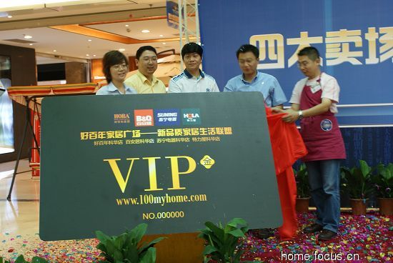 特賣周期間,將有兩個重要角色與成都市民正式見面——好百年家居廣場網(wǎng)站(www.100myhome.com)和聯(lián)盟金卡。好百年家居廣場網(wǎng)站不僅展示好百年家居廣場地標(biāo)形象,更有諸多為消費者量身打造的功能模塊,顧客既可以登陸網(wǎng)站了解廣場最新的活動信息,還可以登陸會員窗口、管理個人信息、查詢會員積分,與賣場進行有效互動。而聯(lián)盟金卡則與現(xiàn)有聯(lián)盟銀卡一道,組成完善的會員服務(wù)體系。啟動儀式上,四大賣場的代表共同開啟了網(wǎng)站和金卡,博得現(xiàn)場觀眾一片掌聲。