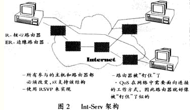 在廣域網(wǎng)上,IETF(Internet Engineering Task Force)定義了兩種IP QoS結(jié)構(gòu)——綜合業(yè)務(wù)結(jié)構(gòu)(Int-Serv