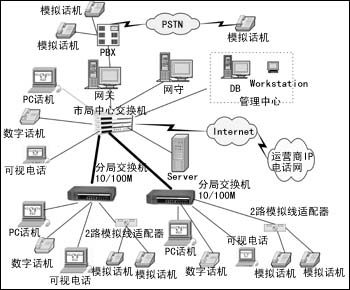 當中國電信、中國聯(lián)通等運營商的IP電話網(wǎng)對外開放時,該網(wǎng)上的數(shù)字電話可通過網(wǎng)守認證直接連入各運營商的IP電話網(wǎng),已有的模擬電話通過與市局中心的程控交換機PBX相連的IP電話網(wǎng)關進入各運營商的IP電話網(wǎng),撥打長途電話時只需支付IP電話結算費(比現(xiàn)在市面上的IP電話費便宜很多)。在市局中心設有網(wǎng)守和管理中心,控制和接續(xù)各話音呼叫,并對系統(tǒng)進行管理。