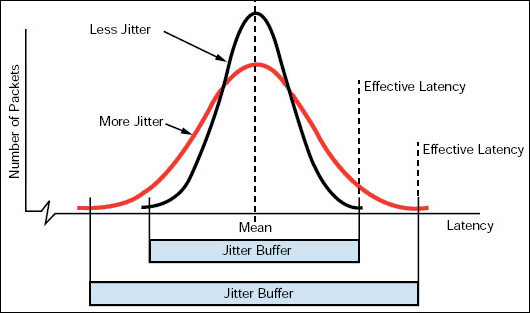 網(wǎng)絡(luò)上的抖動出現(xiàn)50到200毫秒的標(biāo)準(zhǔn)偏差并非罕見。相比之下,企業(yè)LAN卻很少出現(xiàn)超過幾毫秒的抖動。