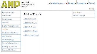 有四個(gè)不同的中繼類型可供選擇:ZAP, IAX2, SIP和ENUM,再加上一個(gè)自定義類型,你所選擇的VoIP服務(wù)提供商應(yīng)該有相關(guān)的信息來指導(dǎo)你選擇哪一個(gè)具體的類型。