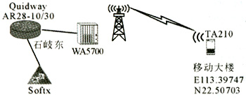 組網(wǎng)時,由于BS(石岐東)需要與廣州的SoftX連接,因此,實際組網(wǎng)方案通過傳輸設(shè)備連接公安局與移動大廈;然后通過移動大廈的CMNet網(wǎng)絡(luò)連接廣州的SoftX。在該個組網(wǎng)中,視距傳播環(huán)境通過固定在移動大樓支架上的遠端站實現(xiàn),非視距傳播環(huán)境通過移動的遠端站實現(xiàn)。