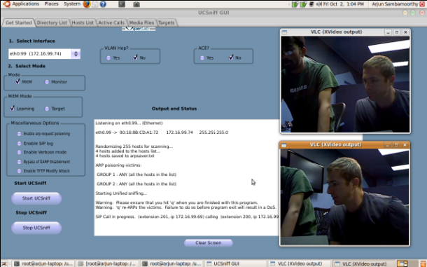 UCSniff的使用者界面,用戶可監(jiān)聽通話,或者獲取IP-based視頻電話的畫面。