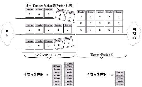 Clarent ThroughPacket是Clarent公司擁有專利權(quán)的IP多路復(fù)用算法,提供了一個(gè)讓數(shù)據(jù)和包的速率失效的解決方案。Clarent ThroughPacket通過(guò)把來(lái)自多個(gè)Fusion語(yǔ)音通道的語(yǔ)音載荷組合進(jìn)一個(gè)大包來(lái)實(shí)現(xiàn)這一功能。需要說(shuō)明的是:Clarent ThroughPacket是Clarent公司和NMS公司合作開發(fā)的,NMS公司完全有權(quán)把這一技術(shù)應(yīng)用于Fusion平臺(tái)以及其它的NMS產(chǎn)品之中。