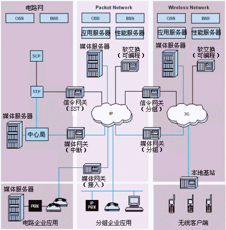 呼叫控制應(yīng)用包括IP電話網(wǎng)關(guān),基于軟交換的骨干網(wǎng),以及業(yè)務(wù)平臺(tái),比如大型語(yǔ)音門戶和語(yǔ)音郵件系統(tǒng)。信令網(wǎng)關(guān)也是移動(dòng)網(wǎng)絡(luò)的一部分,動(dòng)網(wǎng)絡(luò)包括歸屬位置寄存器和短消息中心。引入2.5代和3代移動(dòng)業(yè)務(wù)時(shí),也需要SS7/IP互通,因此,也需要信令網(wǎng)關(guān)。智能網(wǎng)業(yè)務(wù)節(jié)點(diǎn)提供的業(yè)務(wù),比如對(duì)方付費(fèi)電話、語(yǔ)音提示等都可以通過(guò)使用信令網(wǎng)關(guān)而采用能低成本的ip體系結(jié)構(gòu)。
