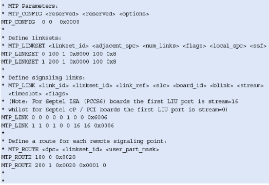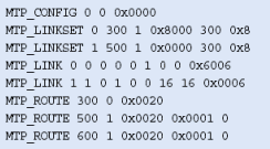 注意,這些不包括任何設置或定義信令板卡的命令,應該象定義標準的單系統(tǒng)一樣定義。MTP_ROUTE <up_enable>參數(shù)為ISUP設置,在上例中用戶部分SI=5。