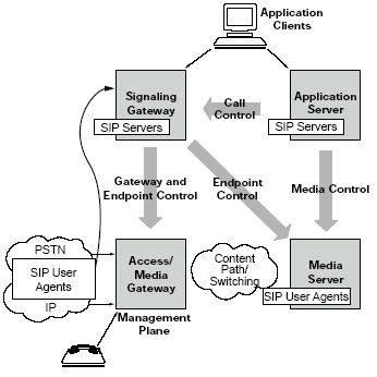 許多語(yǔ)音服務(wù)都是由媒體服務(wù)器提供的。例如,一個(gè)客戶給某個(gè)電子商務(wù)網(wǎng)站打電話會(huì)被接到一個(gè)自動(dòng)語(yǔ)音應(yīng)答(IVR)上或者自動(dòng)總機(jī)上。這些應(yīng)用使用了語(yǔ)音,語(yǔ)音識(shí)別和音頻等功能,都是運(yùn)行在媒體服務(wù)器上的。在下一代網(wǎng)絡(luò)的實(shí)現(xiàn)中,媒體服務(wù)器就象是另一個(gè)電話(或者說,一個(gè)SIP的終端)。因此,他們可以享受和用戶一樣的SIP的優(yōu)點(diǎn)。